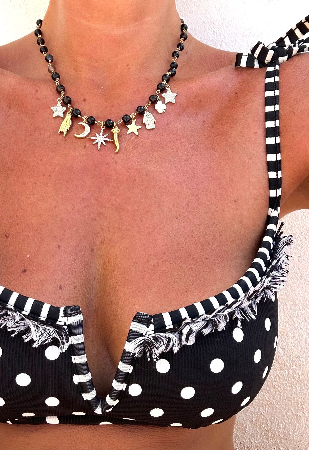 CONSIGLI PER UNA CORRETTA MANUTENZIONE: Consigliamo di non usarla per bagno al mare , piscina e per la doccia , non spruzzare profumo diretto sulla collana , tutto questo può corrodere gli elementi in ottone oro , anche di ottimo materiale e buona galvanica avendo queste accortezze in più la tua collana manterrà la sua originale lucentezza nel tempo .