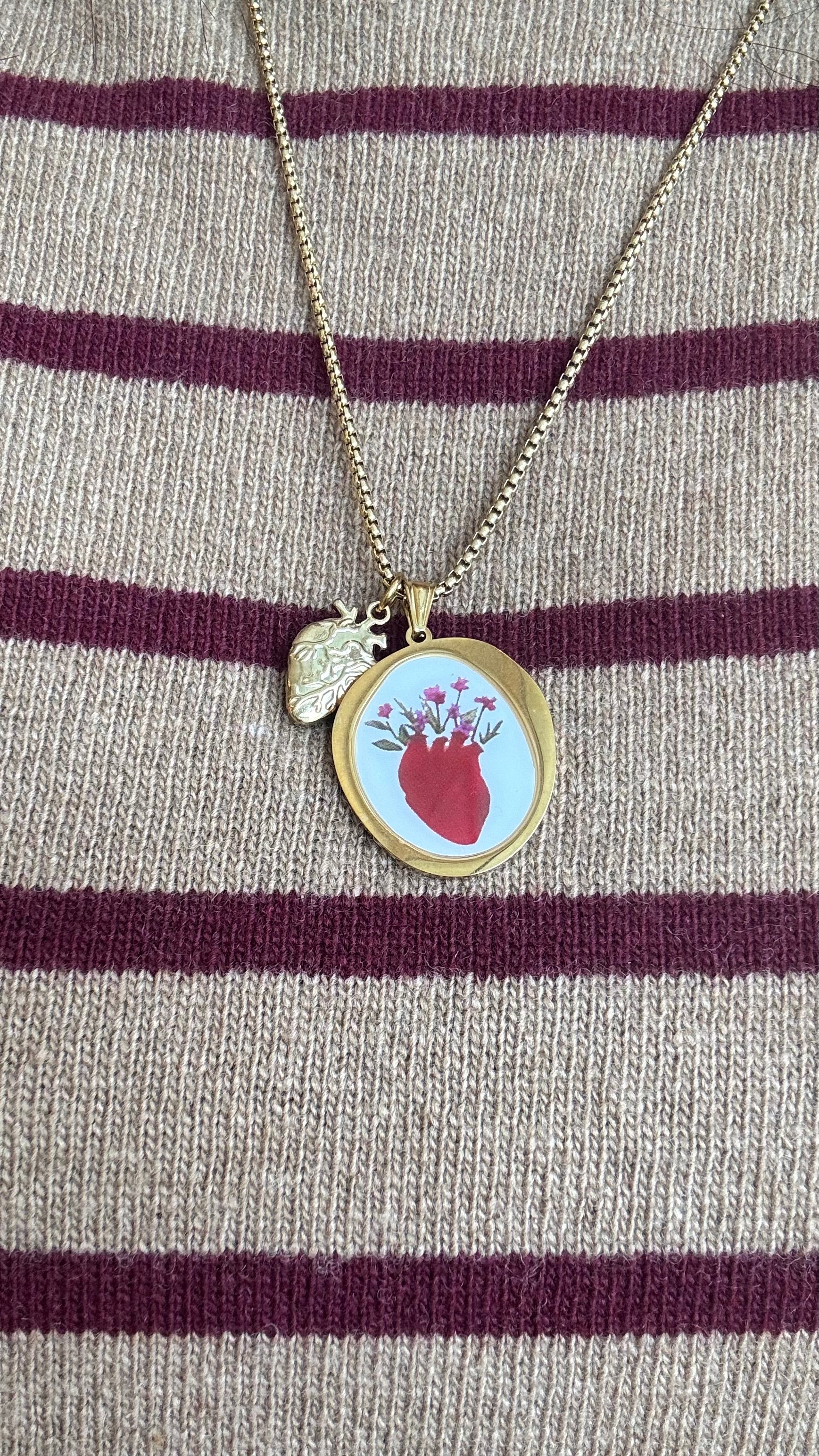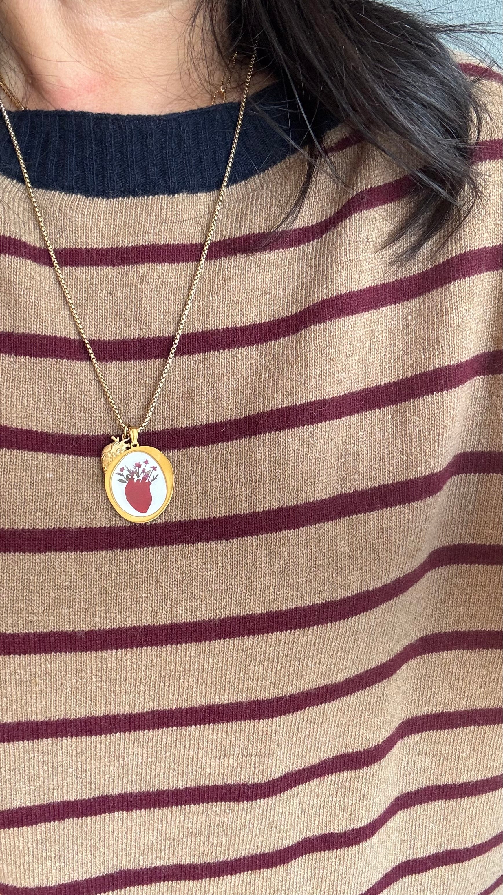 Collane realizzata in acciaio galvanizzato oro e ciondolo in acciaio galvanizzato oro . Nickel free .